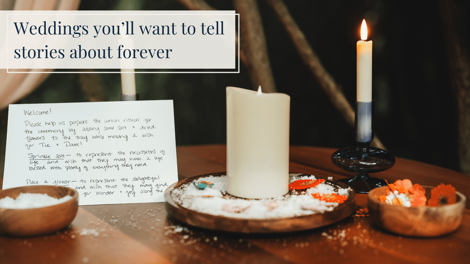 Your wedding ceremony isn't just a precursor to your reception, it's the cornerstone of your wedding day! A personalized ceremony is powerful—it shares the story of your journey together, sets the tone for the celebration to follow, and starts your marriage on the right note.